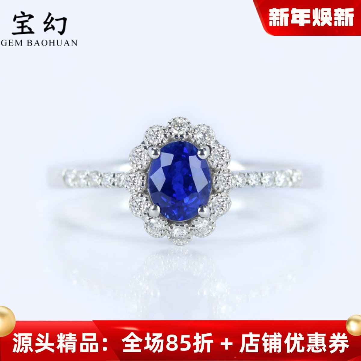 G18K白金天然皇家蓝宝石复古蕾丝戒指 艳丽正蓝色镶钻石正品女款
