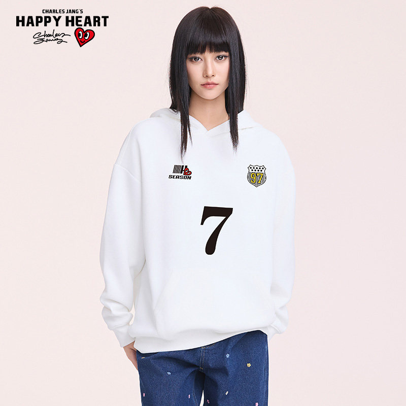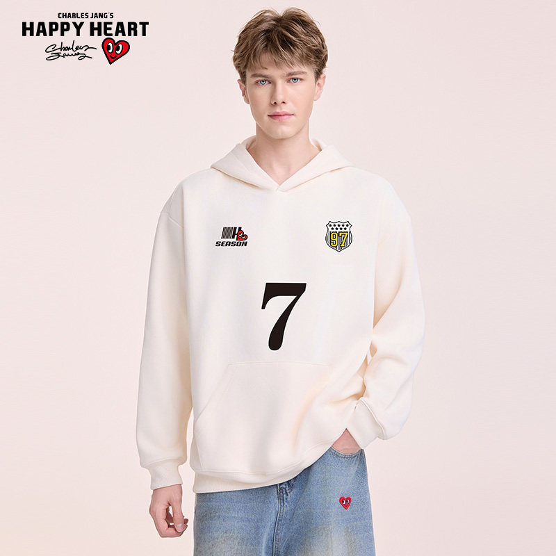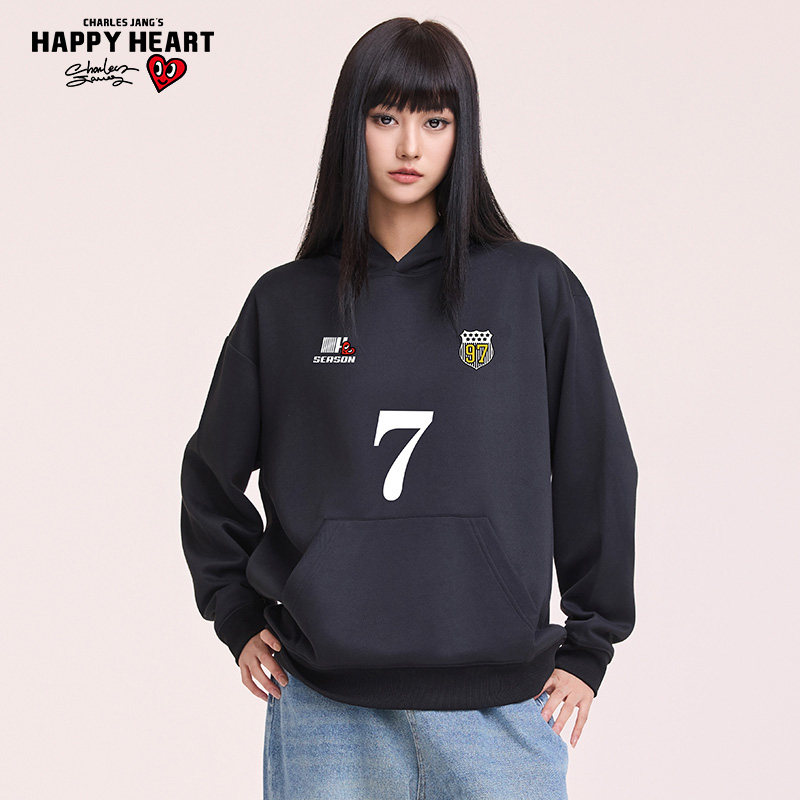 查尔斯桃心 美式运动风连帽卫衣男女春秋季数字7印花长袖情侣外套