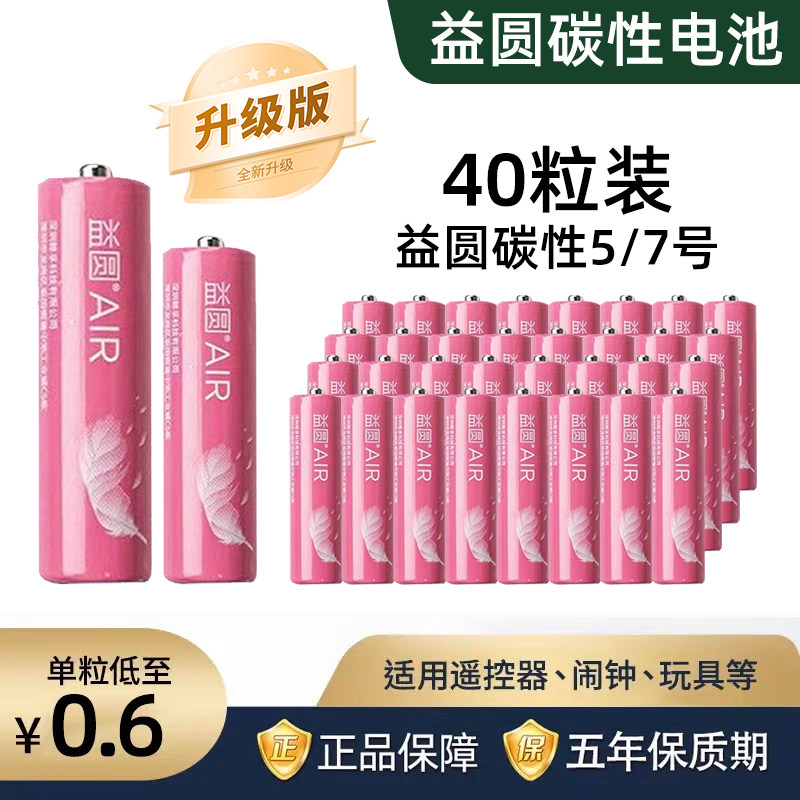 益圆5号7号碳性电池电视空调遥控器钟表aa a五号七号40粒儿童玩具挂钟鼠标话筒一次性普通干电池正品1.5V批发