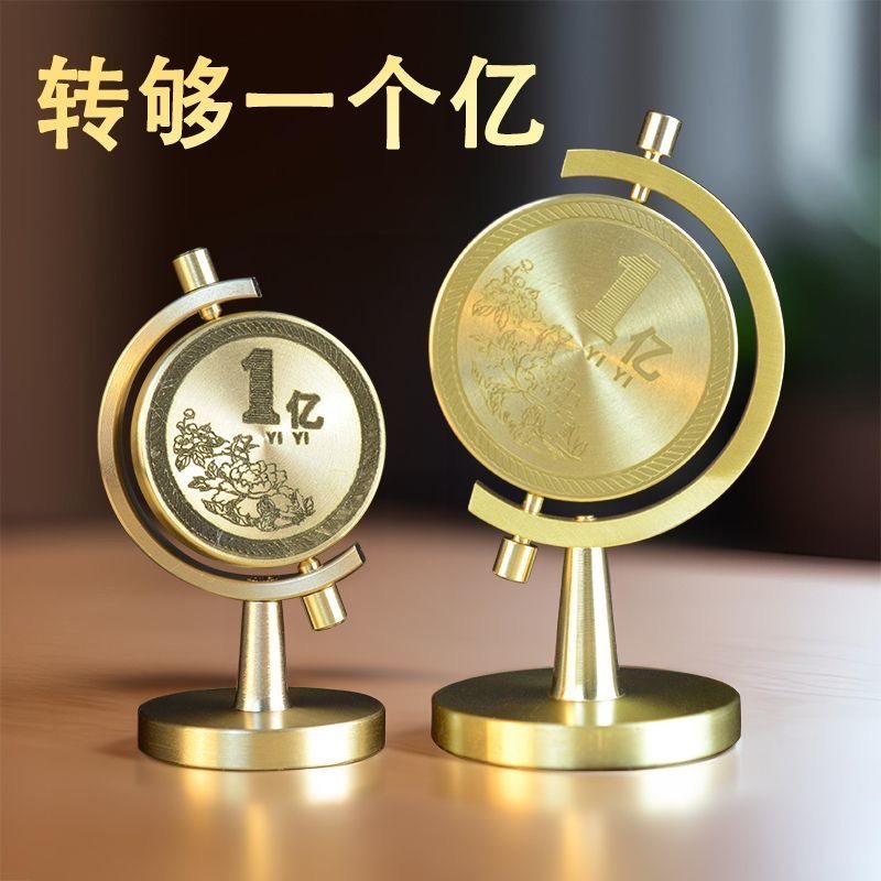 黄铜一个亿桌面客厅车载转转办公室创意办公桌时来运转摆件把玩