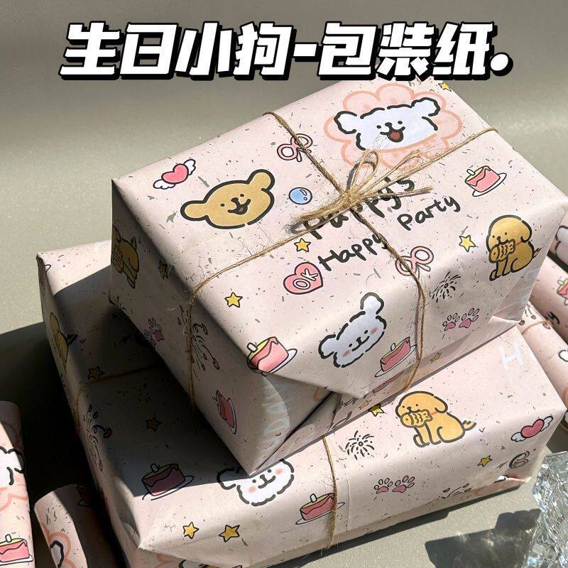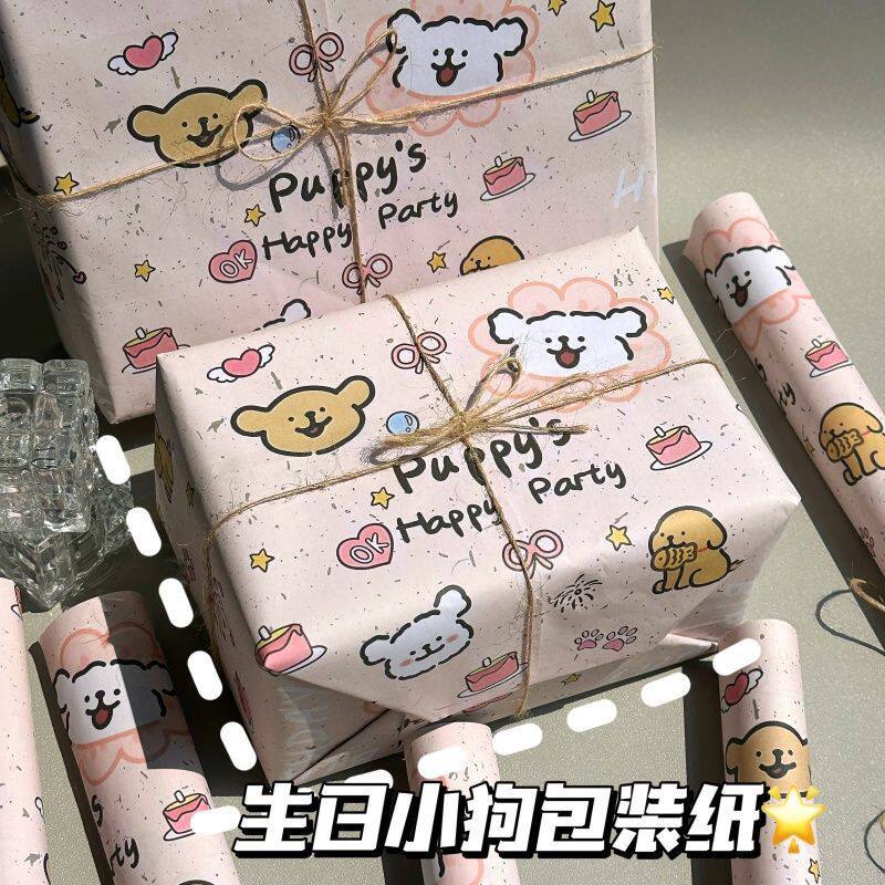 开心小狗ins风高颜值包装纸大尺寸DIY卡通礼品礼物鲜花礼物打包纸