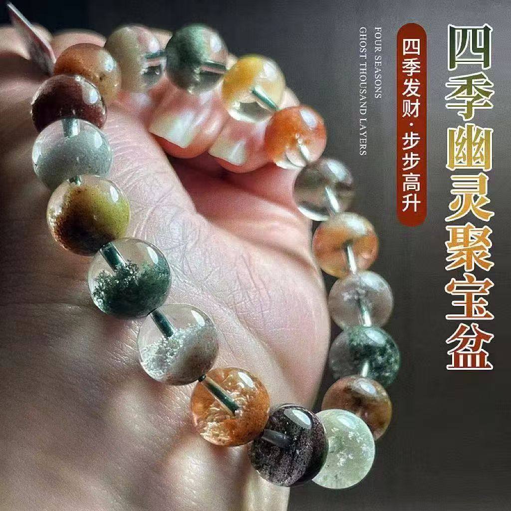 普陀山天然四季幽灵水晶手链手串品质高晶体发一珠宝玉石聚宝盆