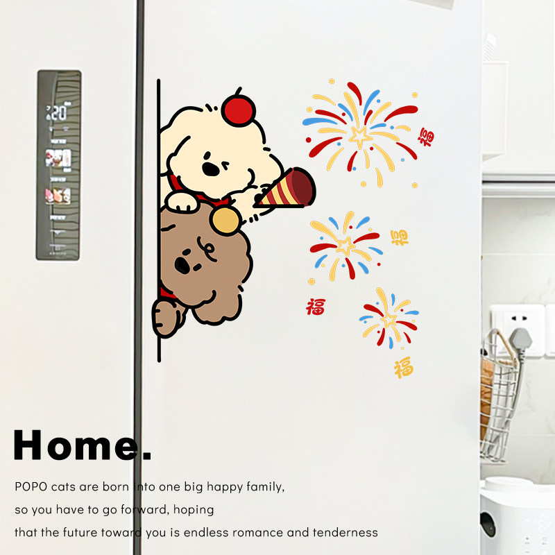 送福小狗福字冰箱贴纸遮丑马年厨房冰箱装饰静电贴新年布置高级感