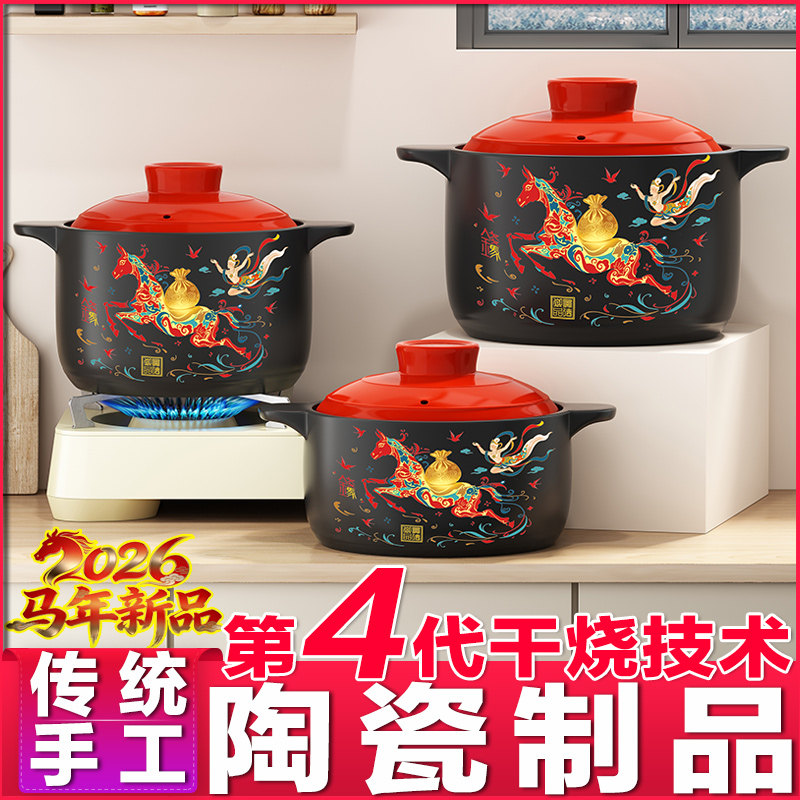 中式砂锅炖锅家用燃气耐高温干烧不裂煤气灶专用煲汤炖菜陶瓷沙锅