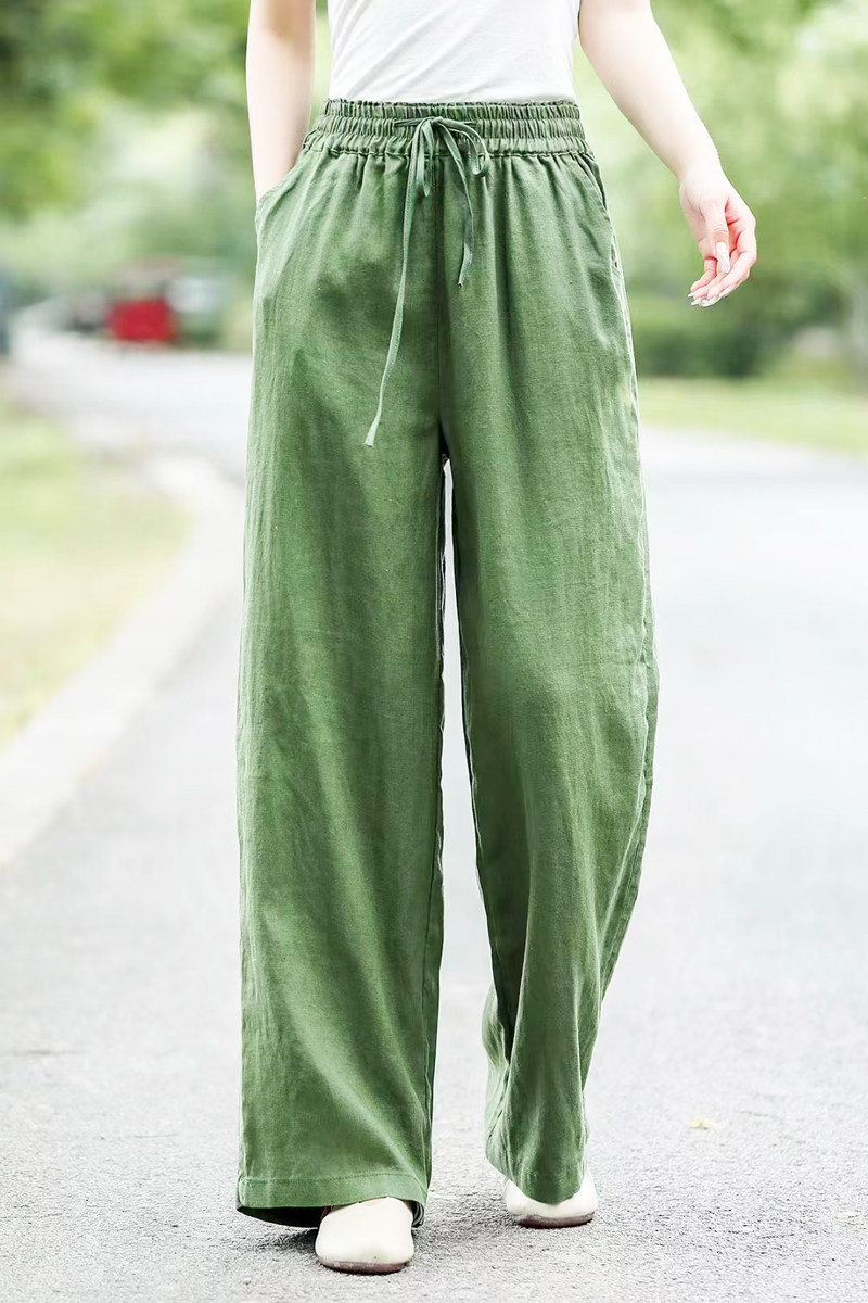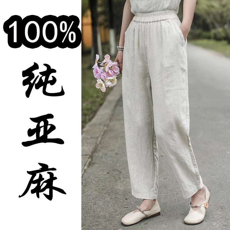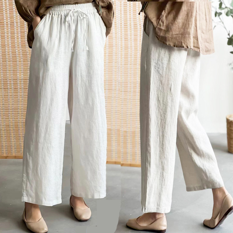 莲子高端纯亚麻春秋2025女新款夏棉麻苎麻薄九分阔腿白长裤麻裤子
