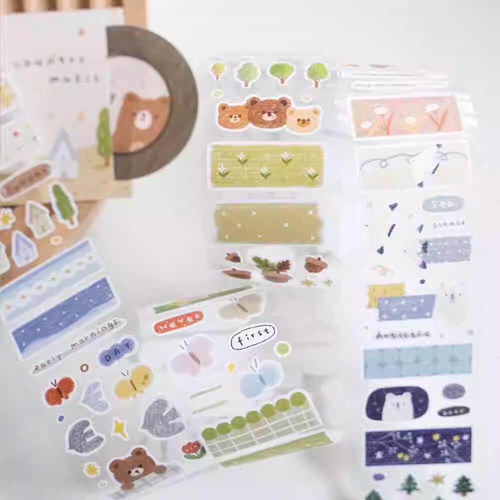橙子5月新款手账和纸胶带派对森林可爱装饰贴纸带切膜贴纸卷闪膜