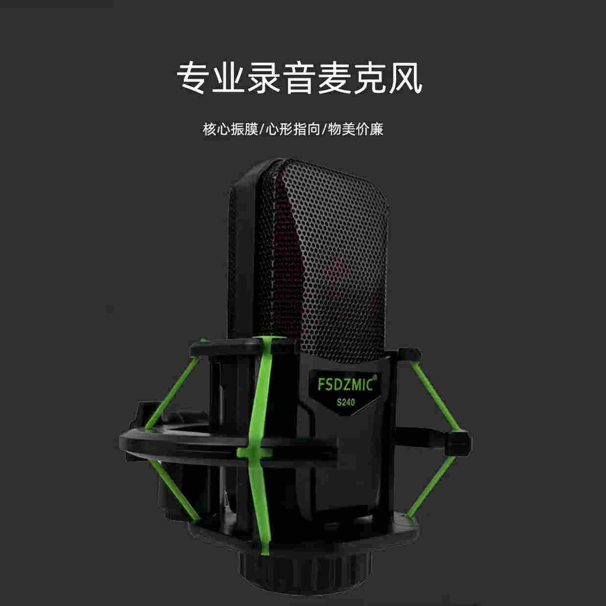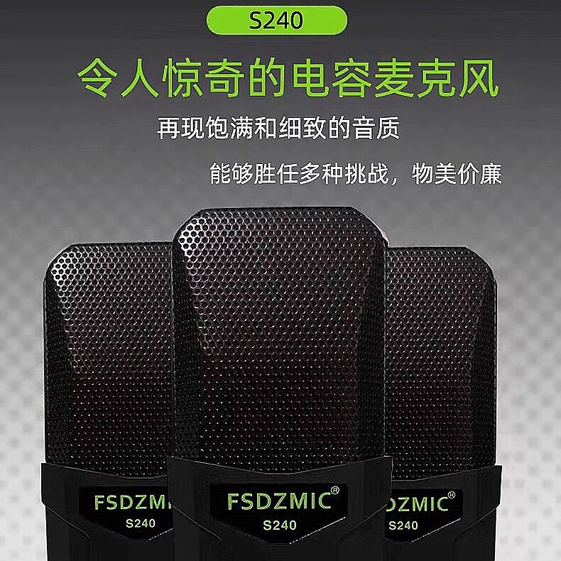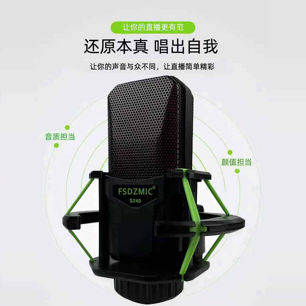 S240麦克风声卡直播唱歌电容麦台式电脑录音游戏娱乐专用新款话筒