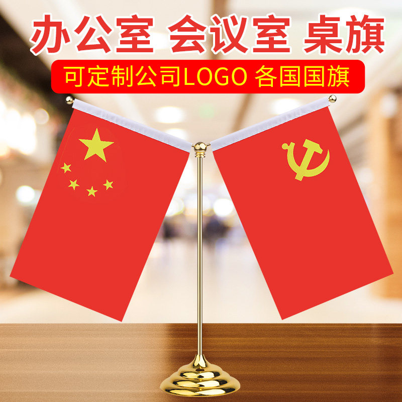 党旗国旗桌面摆件办公室桌旗 国旗小红旗 会议室桌面装饰旗座办公桌旗子 五星红旗小国旗 桌上旗杆室内台旗