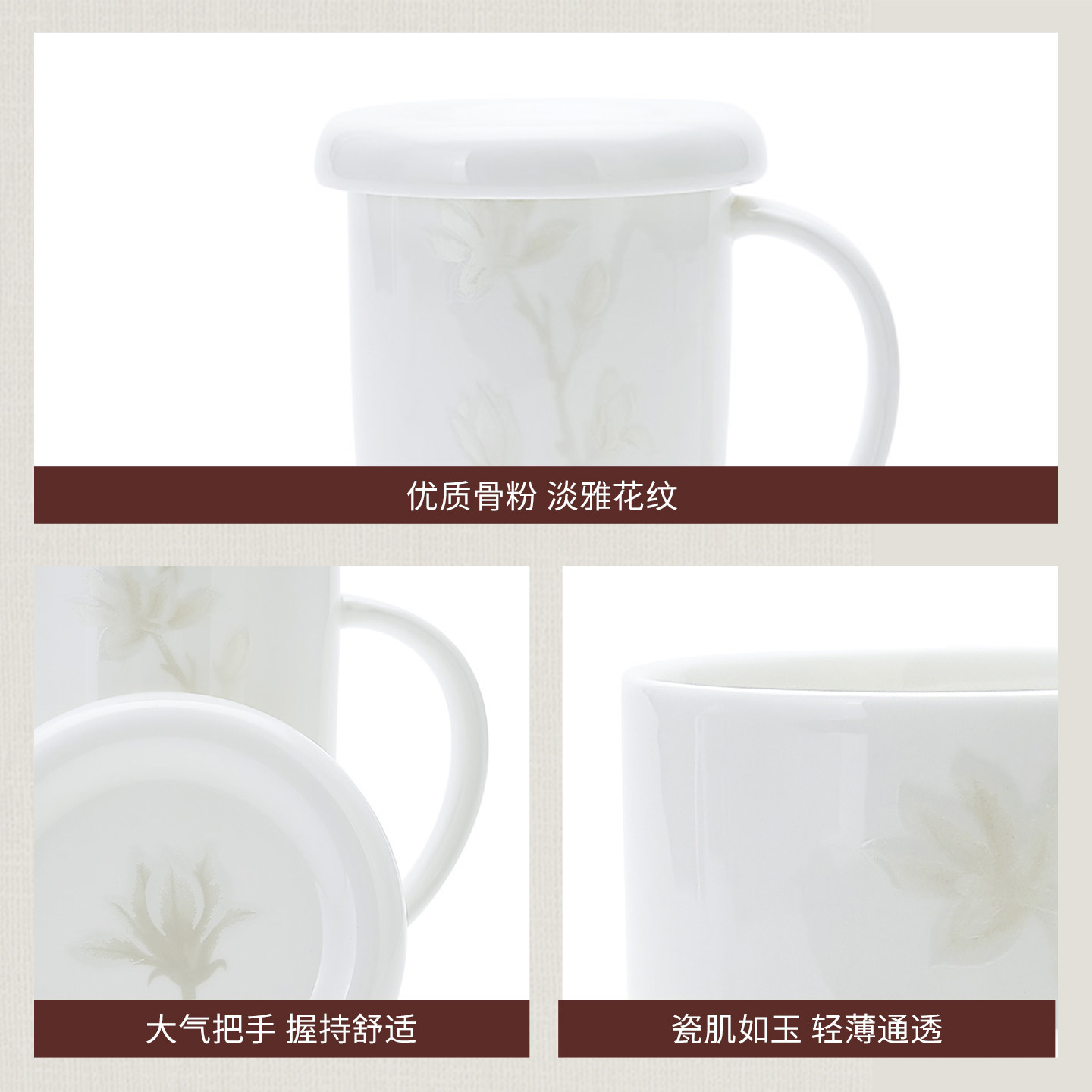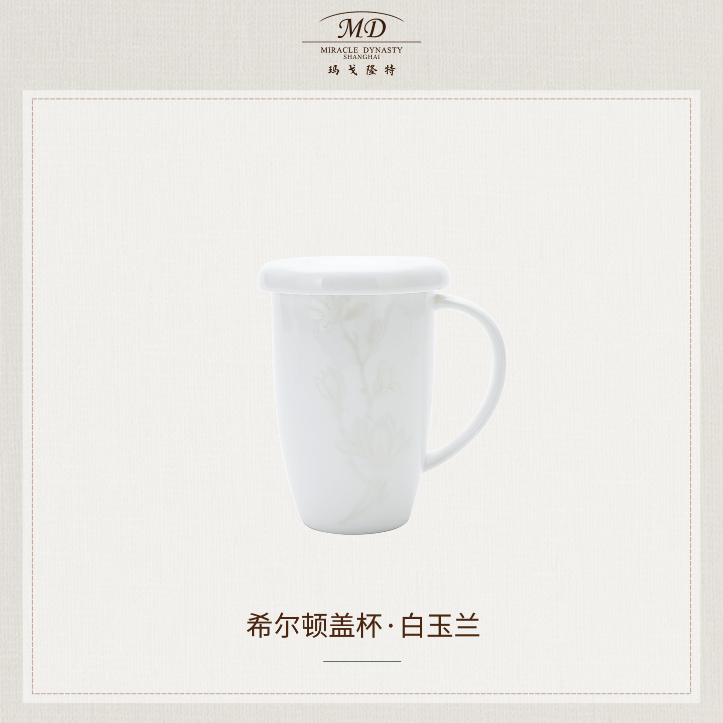 玛戈隆特希尔顿骨瓷带盖马克杯泡茶喝水杯子办公室水杯家用茶杯男