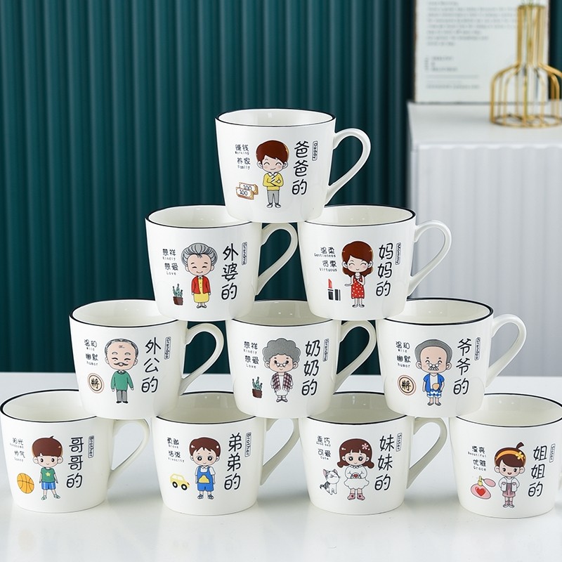 亲子杯陶瓷杯家用喝水杯一家三口四口茶杯早餐杯儿童马克杯一家人