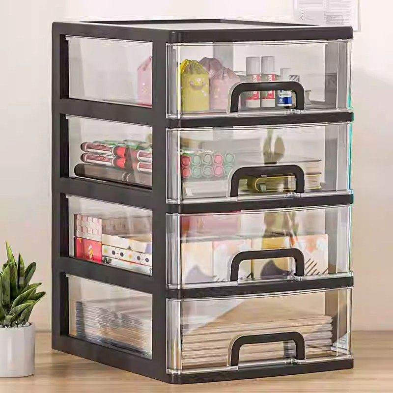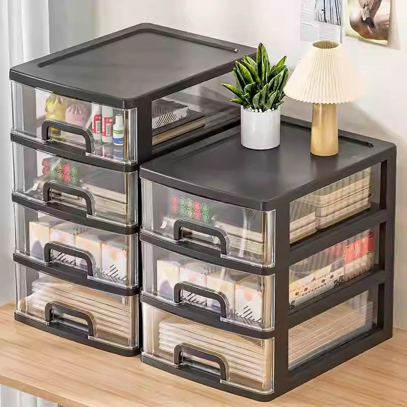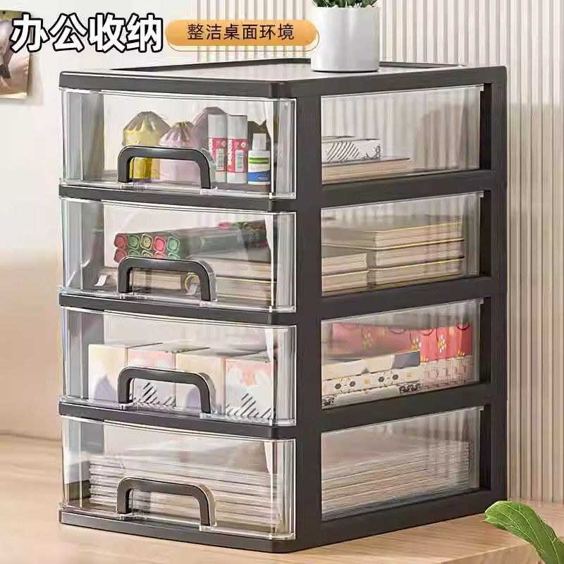 桌面文具收纳盒家用抽屉式大容量多层化妆品置物架透明杂物整理盒