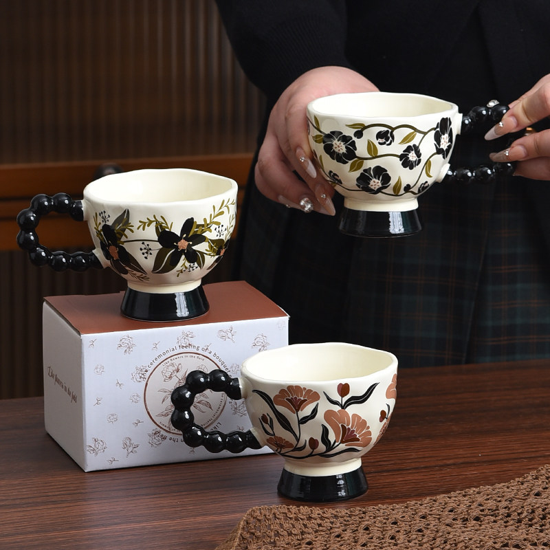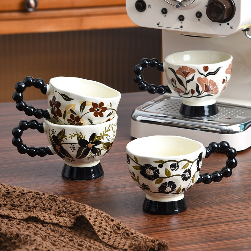 中古杯子高级感轻奢高脚马克杯陶瓷下午茶杯咖啡器具办公室喝水杯