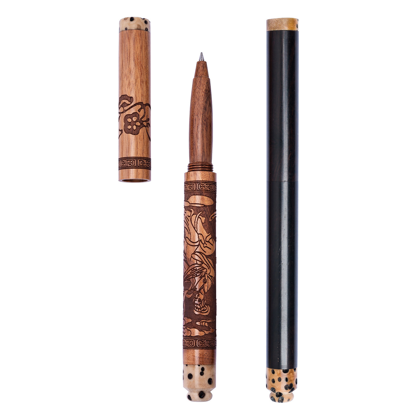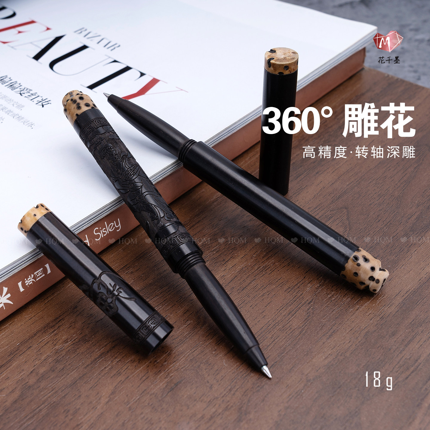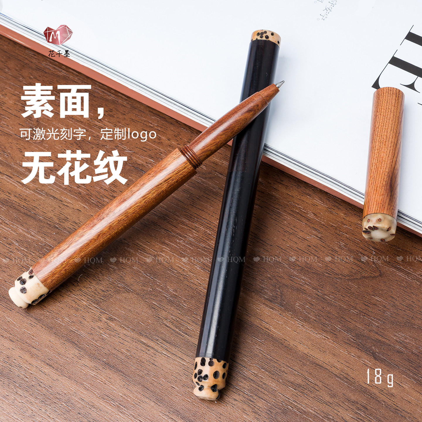 全木雕花菩提子中性笔0.5复古檀木签字笔定制logo刻字商务礼品笔