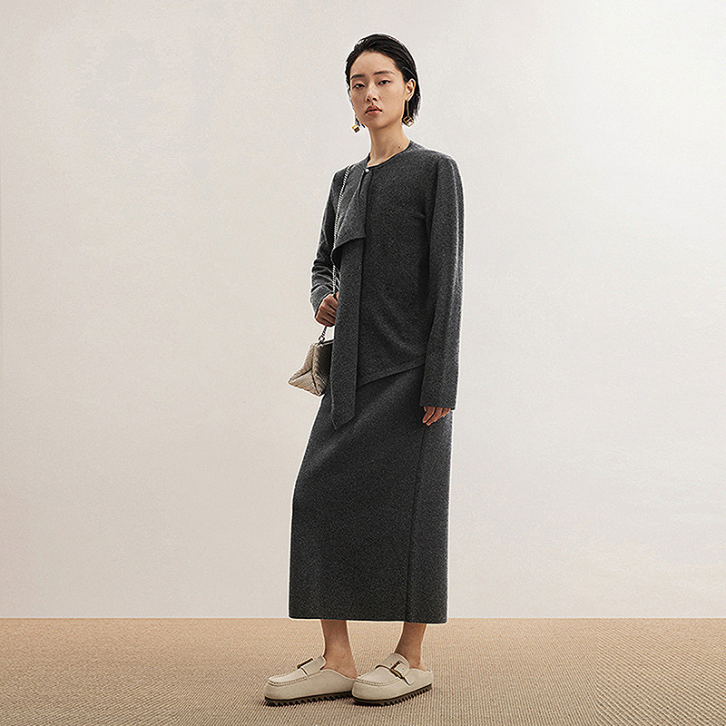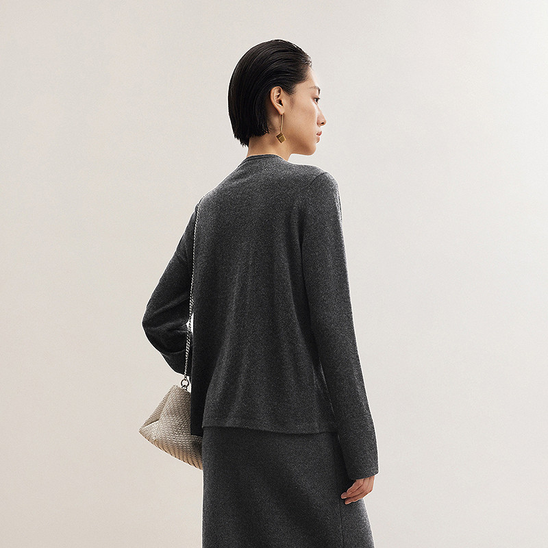 【商场同款】LESS2025年秋新通勤圆领纯色开衫羊绒衫女2P9314400