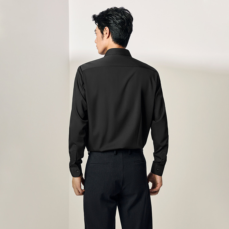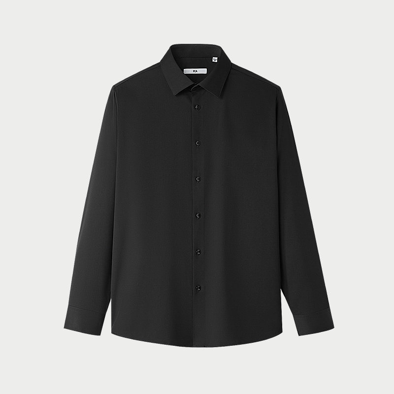 HLA/海澜之家免烫长袖正装黑衬衫25秋新舒微弹抗静电职场衬衣男装