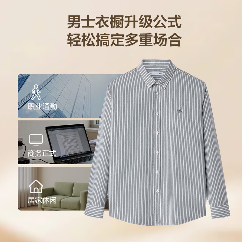 【纯棉牛津纺】海澜之家商务长袖休闲衬衫春夏新刺绣大码可选男装