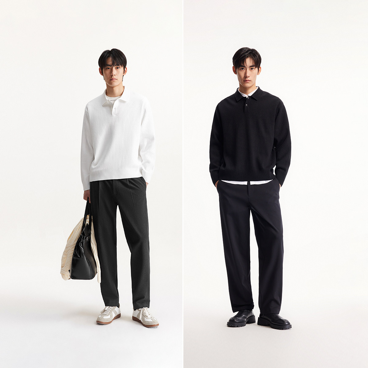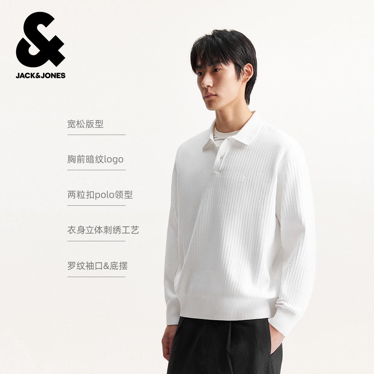 杰克琼斯男装春秋季毛衣针织衫商务日常纯色潮流polo领长袖上衣