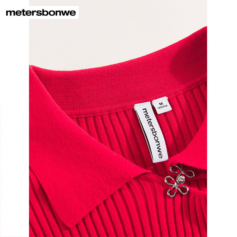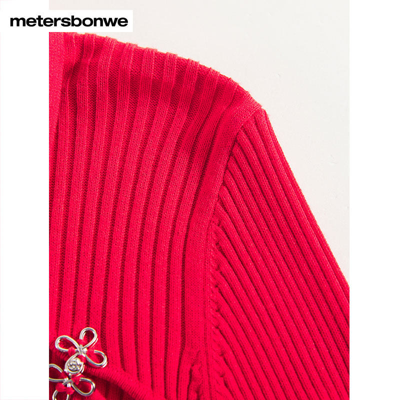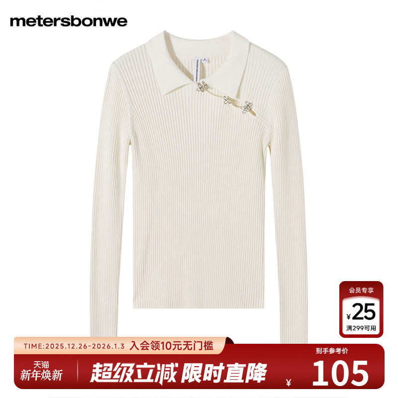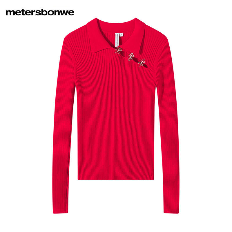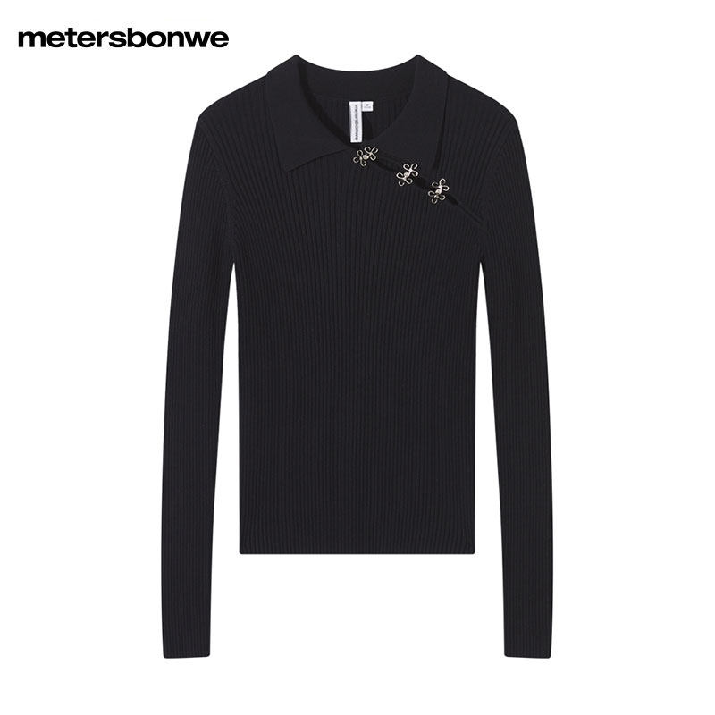 美特斯邦威毛衫女士秋季新款纯色舒适设计感镂空新中式柔软打底衫