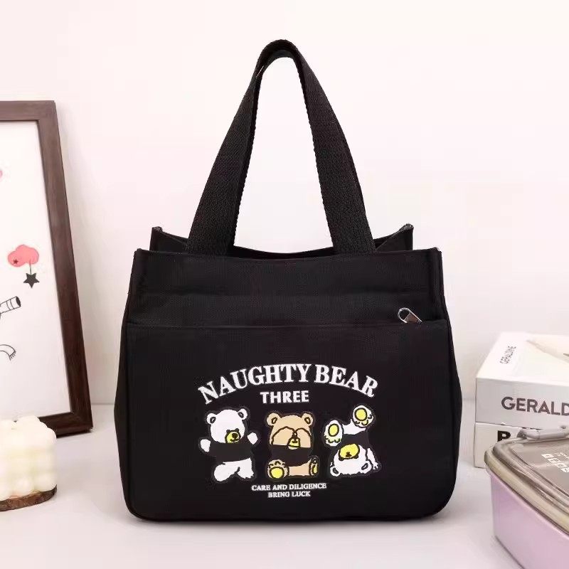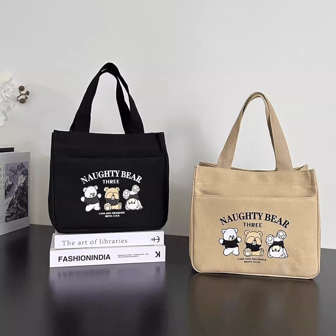 帆布手提包小巧百搭上班族便当包新款学生大容量饭盒袋简约手提袋
