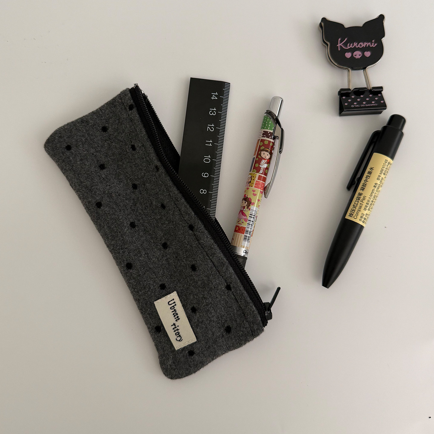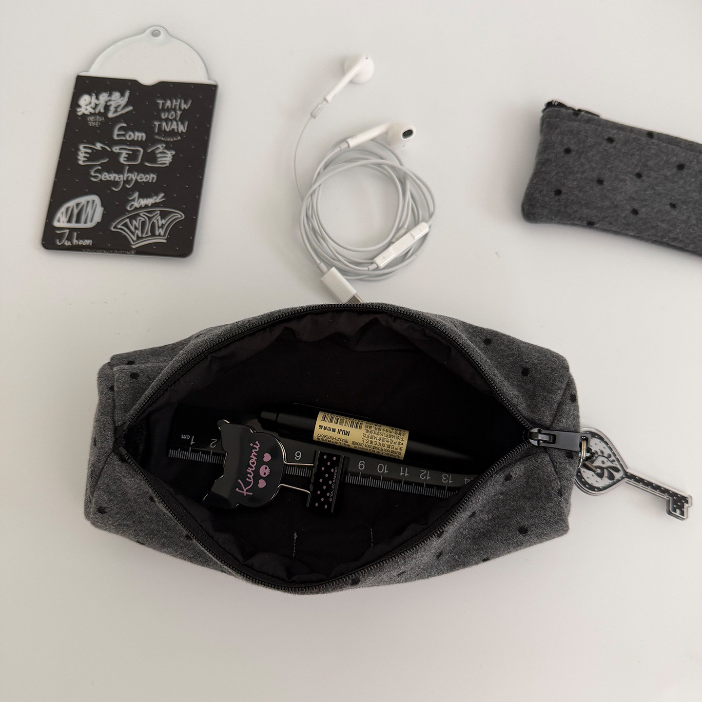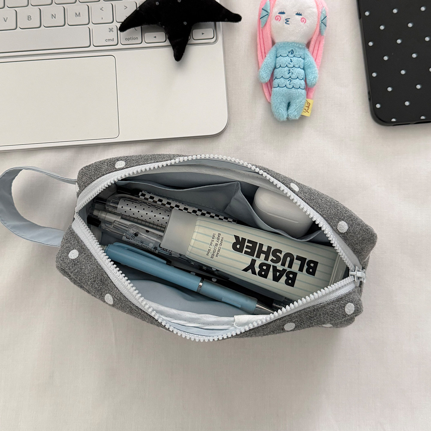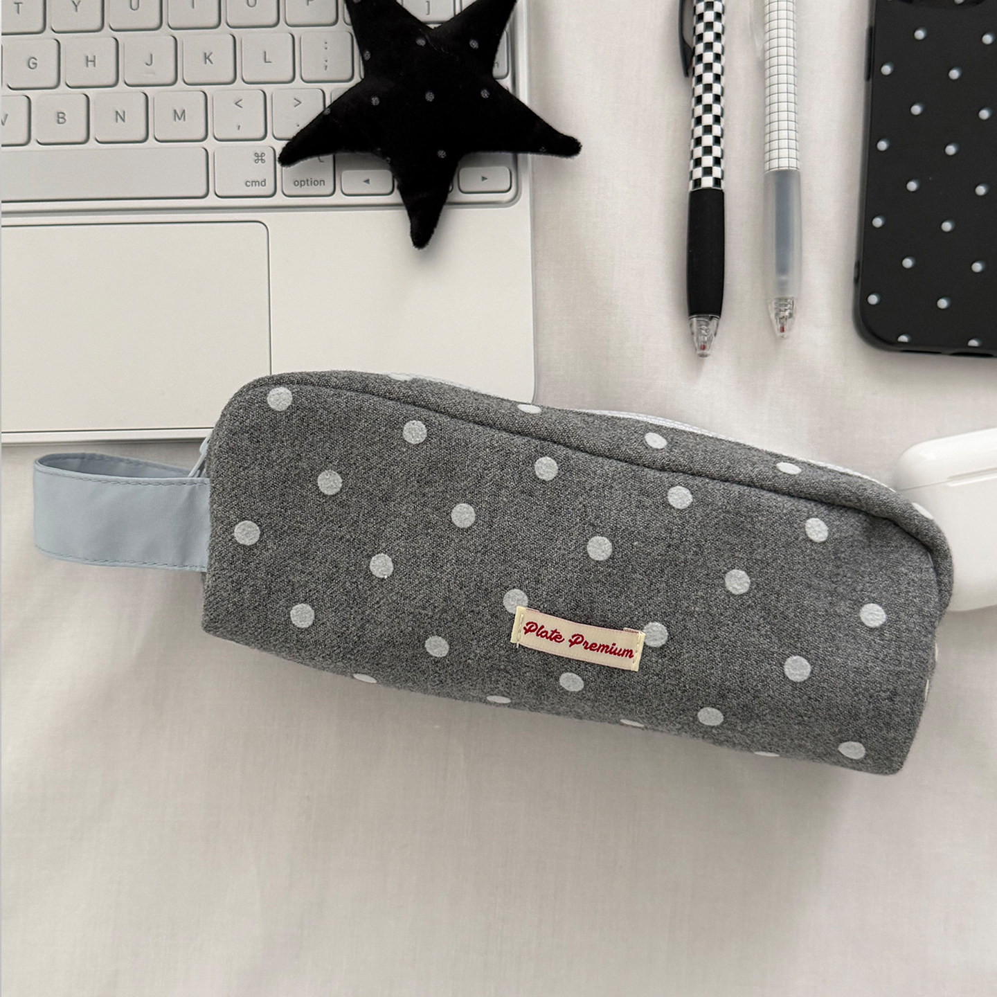 Unique blue灰黑波点笔袋收纳包ins风大容量立体笔袋韩系化妆刷包