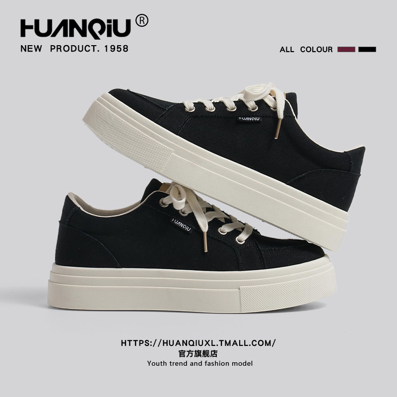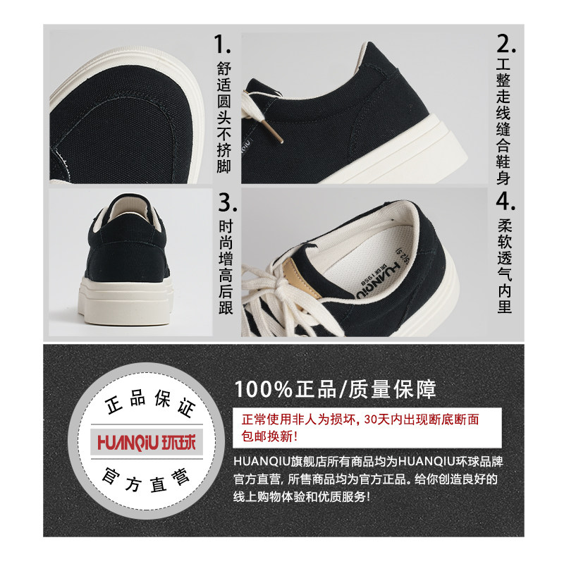 环球厚底帆布鞋男款2025新款秋冬透气轻便增高板鞋休闲运动鞋子男