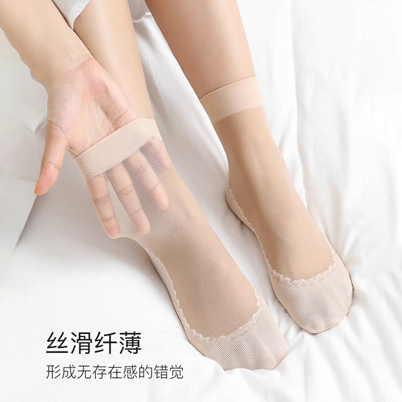 袜子女丝袜薄款短袜女士肉色防勾丝棉底防滑中筒钢丝袜吸汗神器