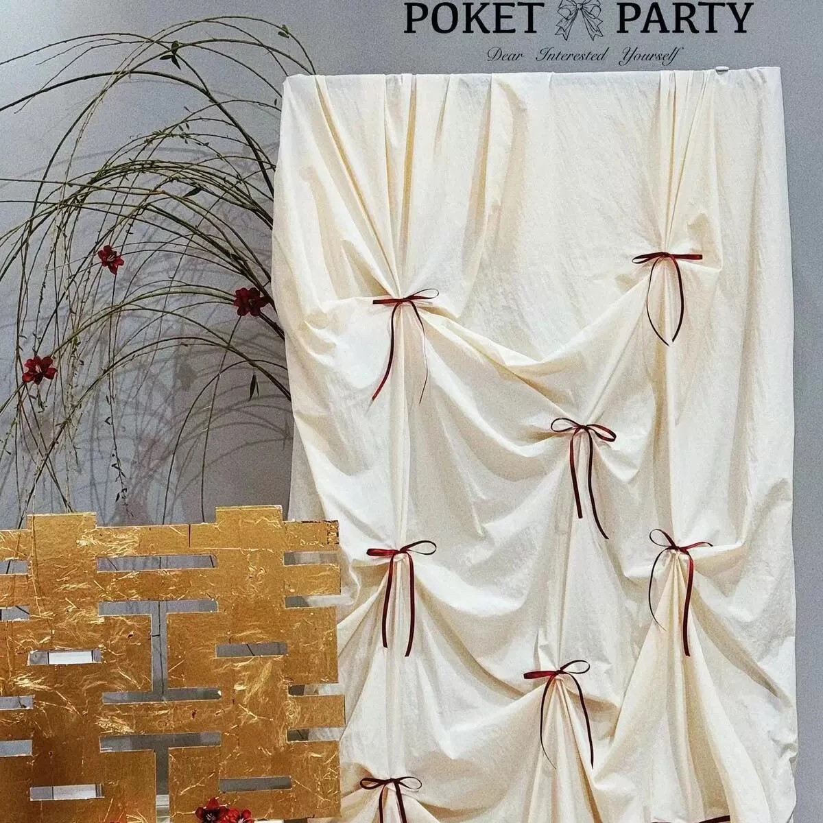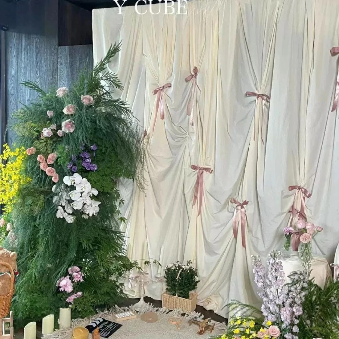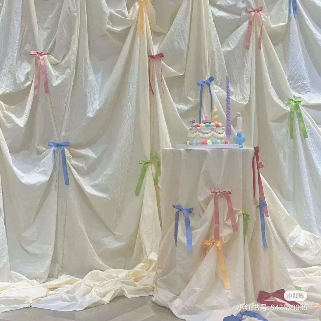 韩式蝴蝶结褶皱背景布网红摄影拍照道具布生日布置棉麻布订婚场景