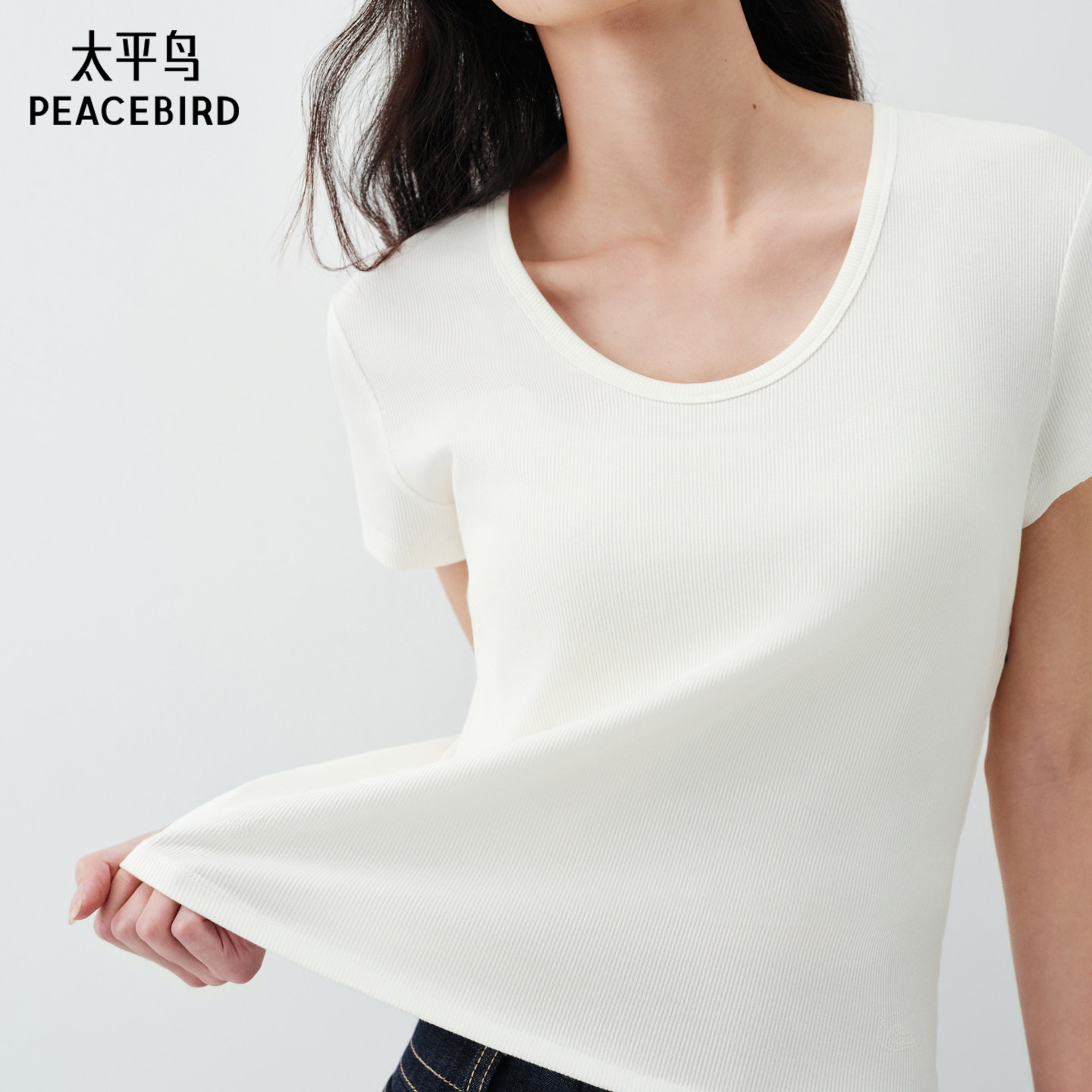 商场同款太平鸟博物馆马蒂斯联名天鹅颈万金油短袖T恤女A1CNG2160