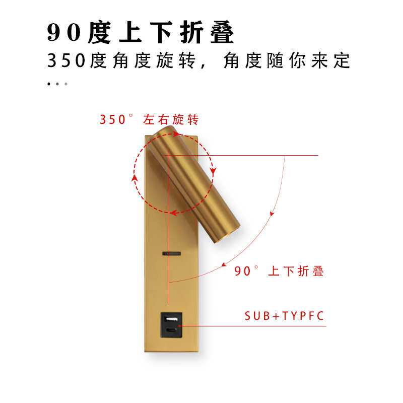 酒店客房LED3W床头阅读壁灯USB接口充电阅读灯卧室墙壁灯壁挂式