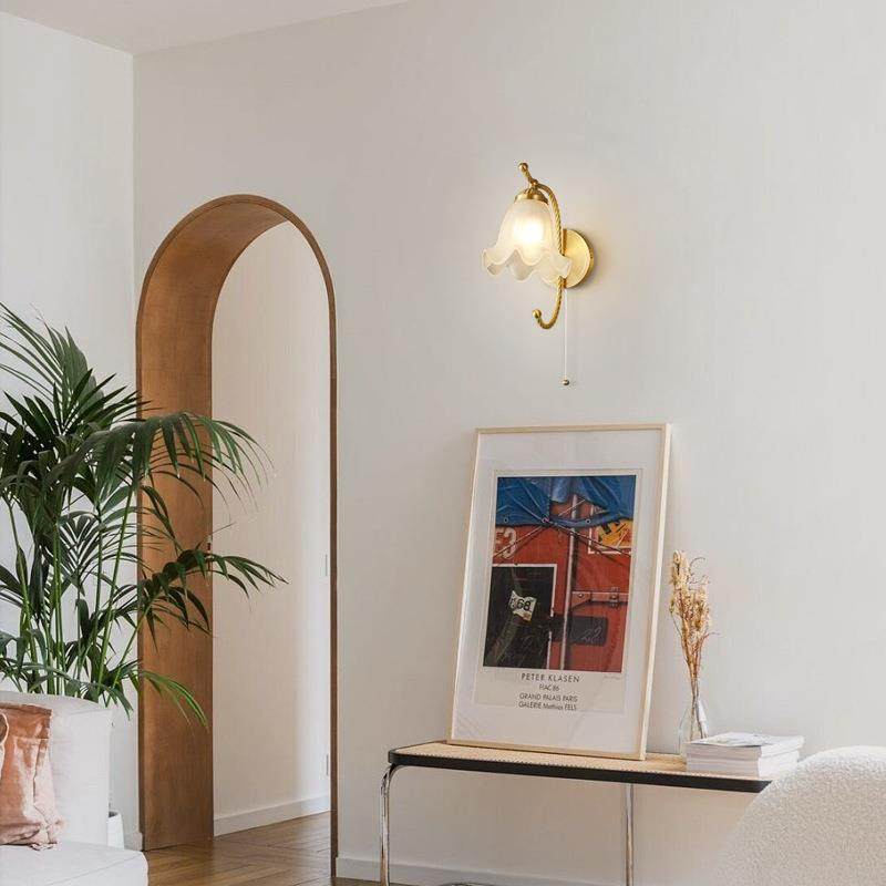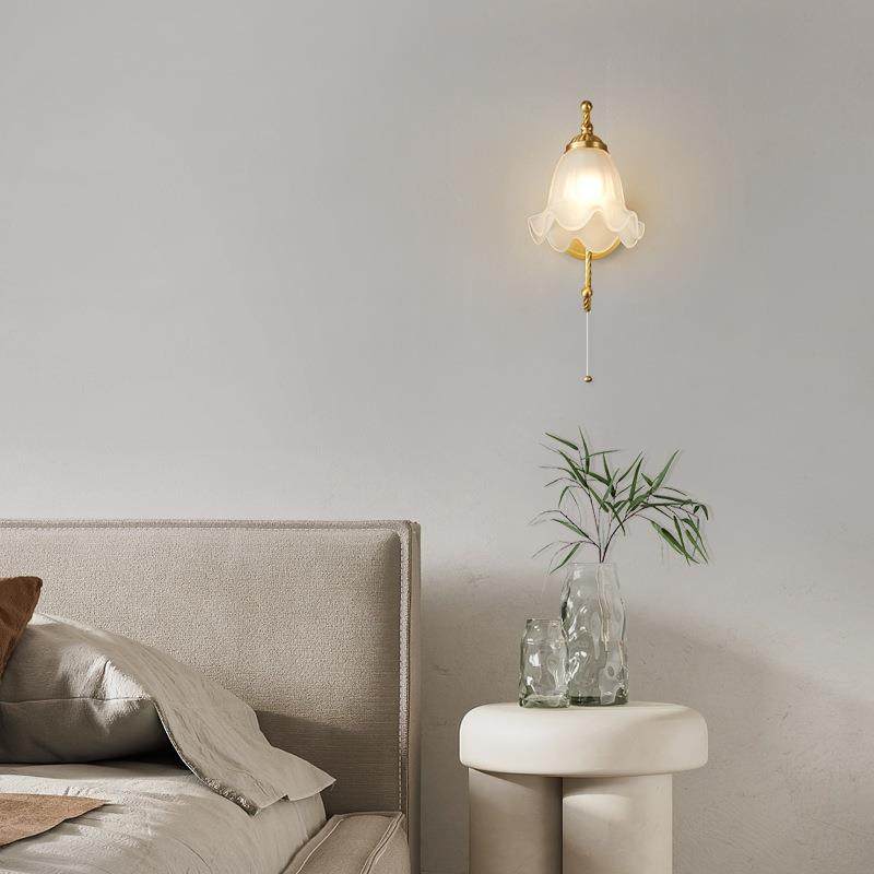 美式复古奶油风铃兰花壁灯过道玄关灯具法式全铜餐厅卧室床头壁灯