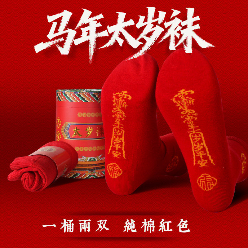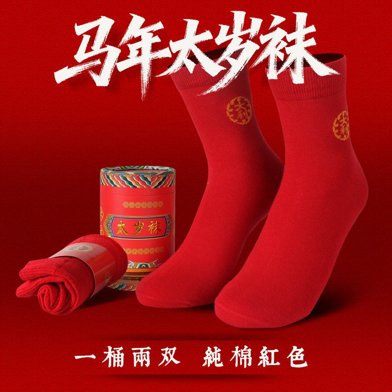 踩2026马年本命年秋冬季红色袜子男士女款新年中筒袜小人图礼物