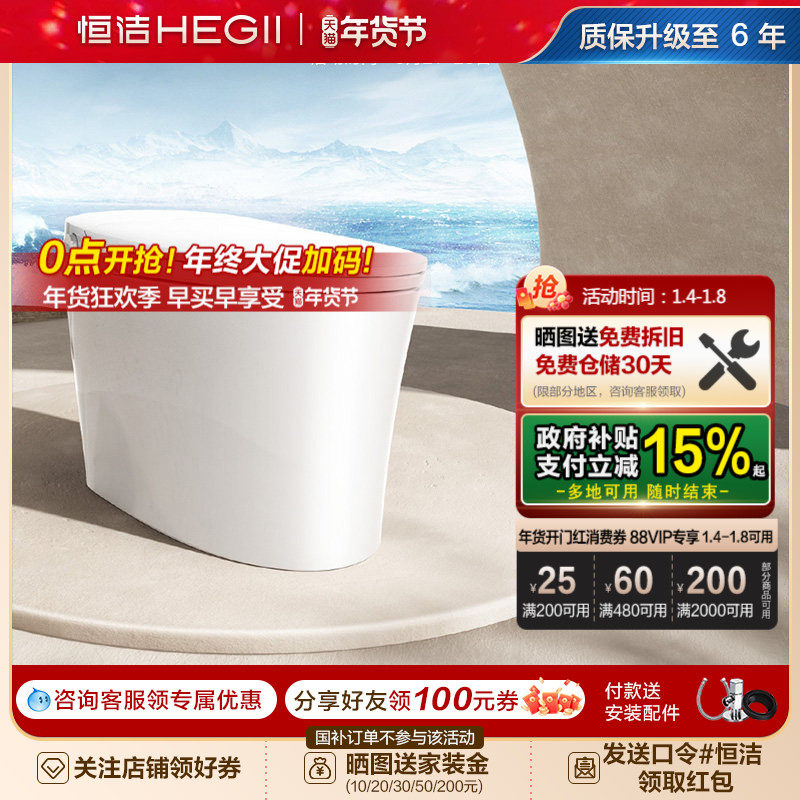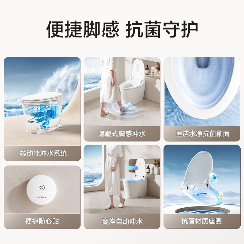 [内置水箱]恒洁轻智能马桶随心贴脚感冲水停电冲坐便器零压劲冲E2