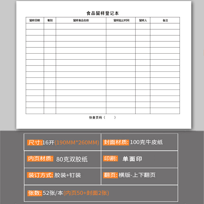 食品留样登记本食品台账餐饮食堂餐饮单位包邮食品台账食品进货采购餐具消毒幼儿园酒店厨房饭堂食堂登记表