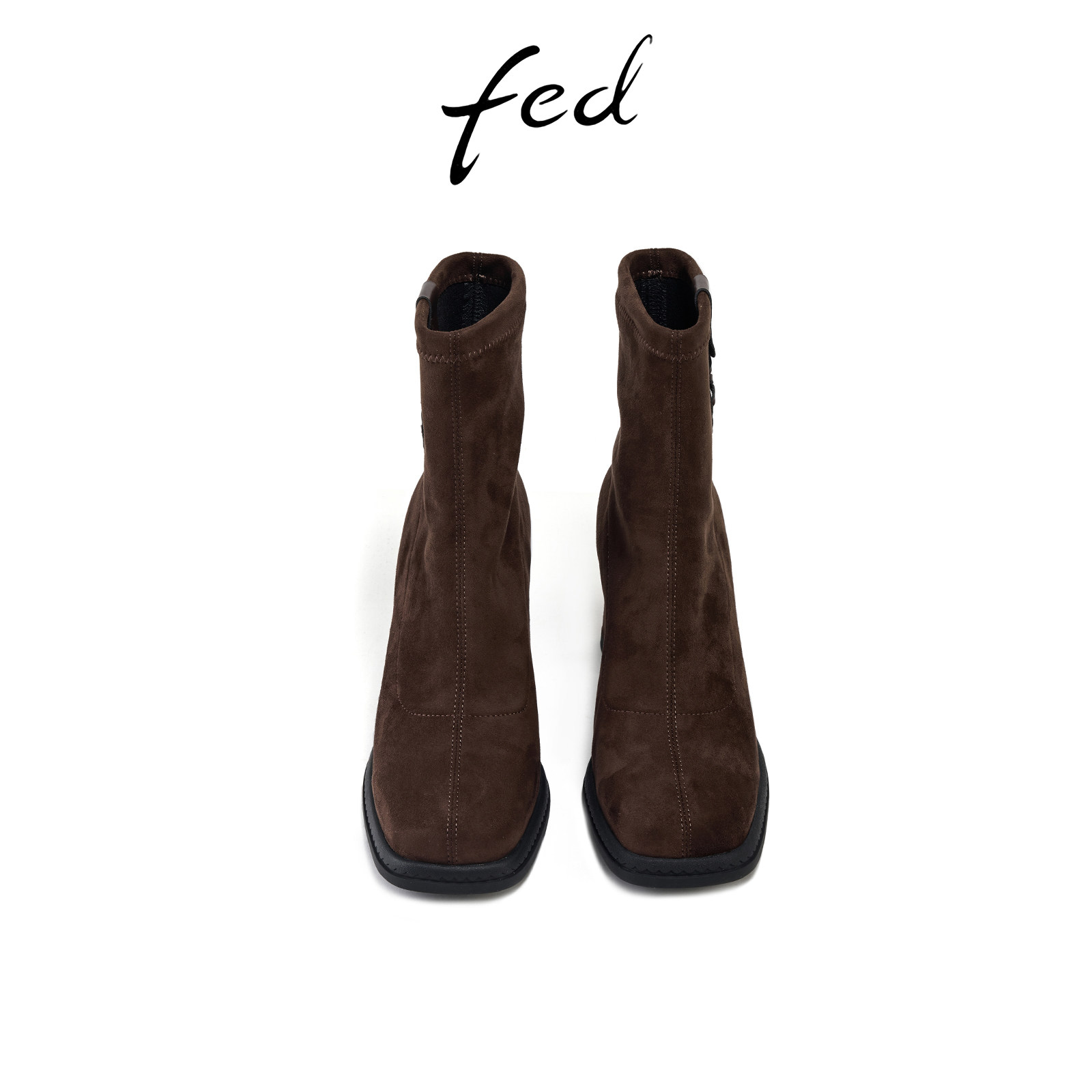 fed高跟短靴秋季新款女靴踝靴弹力瘦瘦靴时装靴女款S0823-YAB708