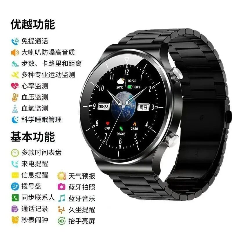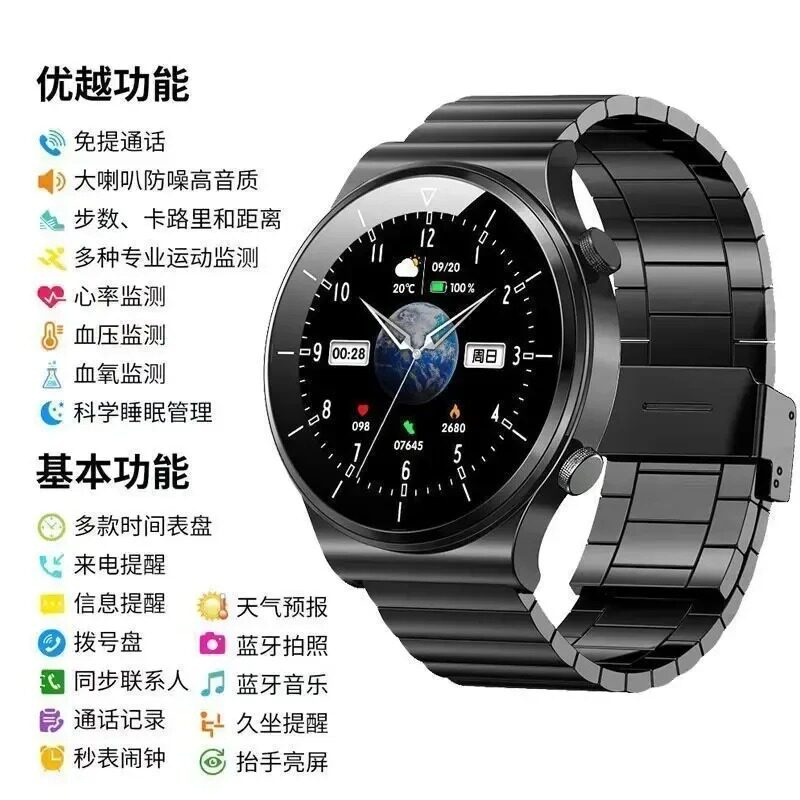 【气泵式】测血压手表高精度心率手环血氧风险评估检测量仪老年人健康监测睡眠运动跑步新款蓝牙智能手表男女