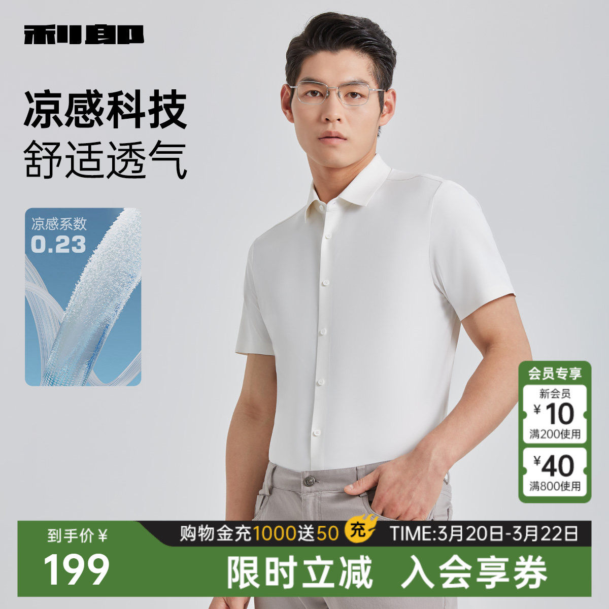 【凉感透气】利郎官方短袖衬衫男士商务纯色夏季新款冰丝衬衣男