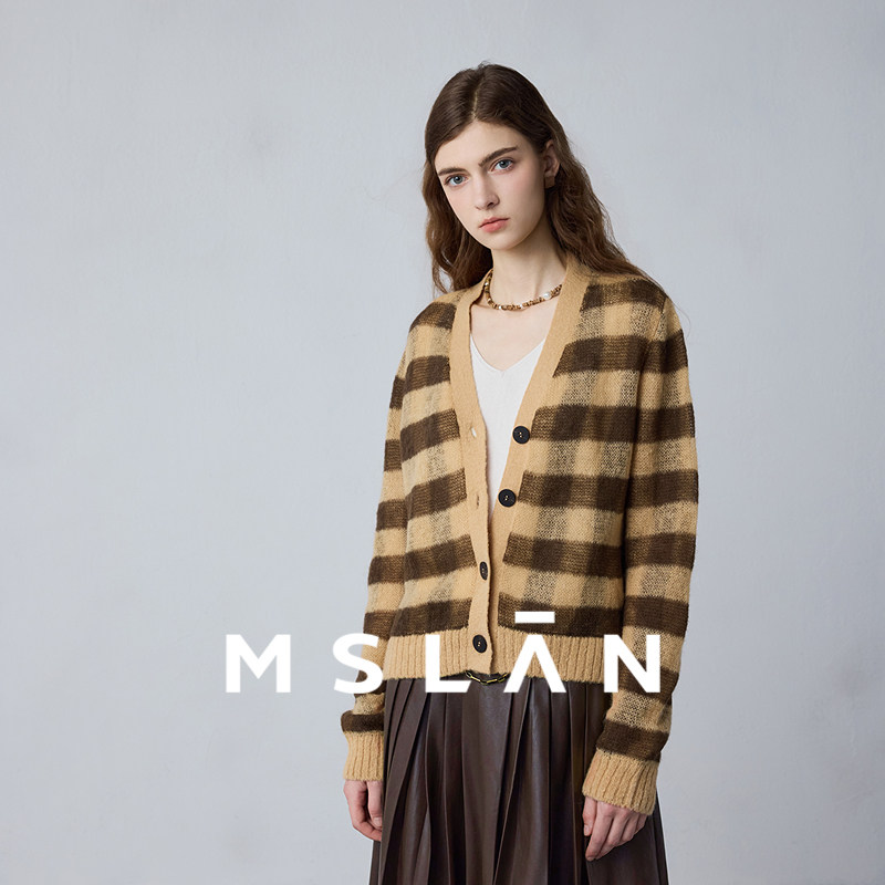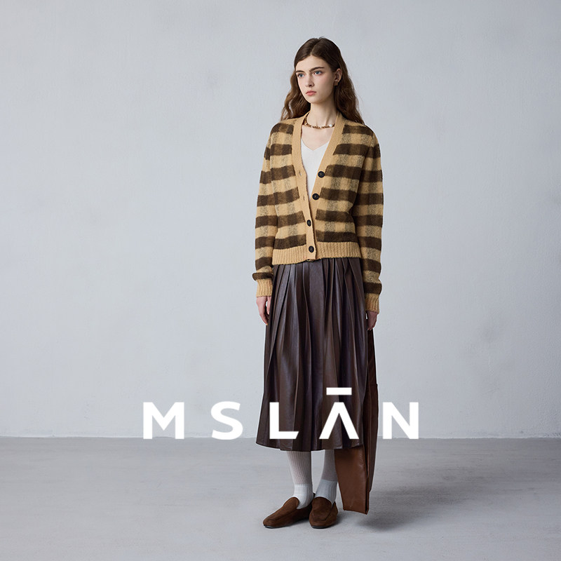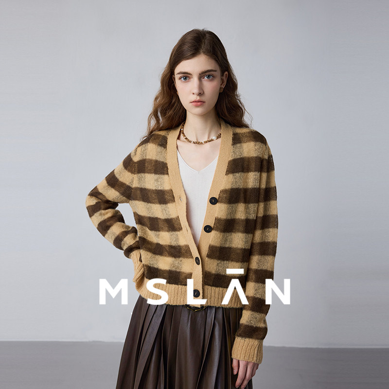 马海毛/MSLAN焦糖拿铁 25秋冬慵懒亲肤针织衫软糯条纹开衫