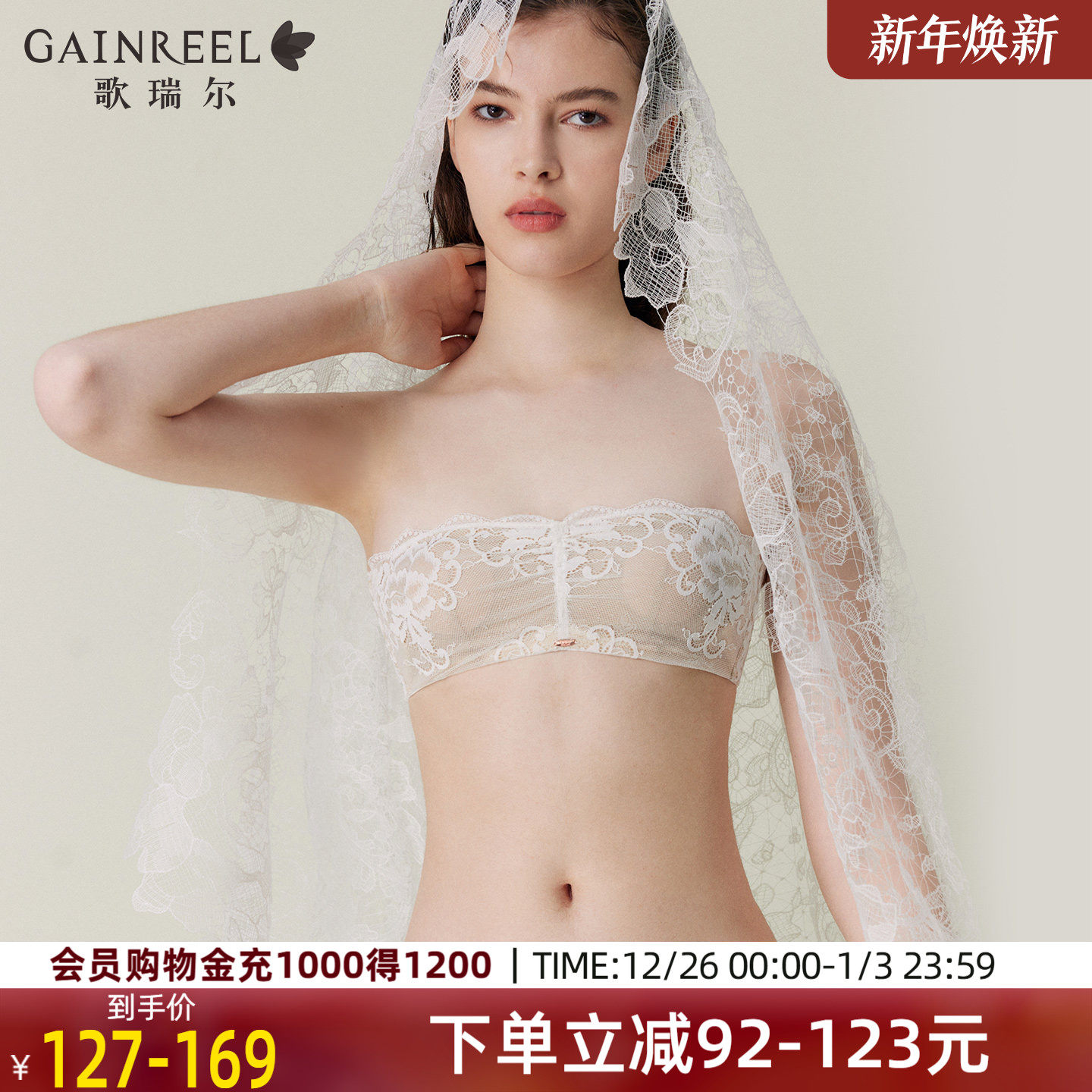 蕾丝美背抹胸歌瑞尔薄杯文胸罩禁欲系性感无肩带内衣女2025年新款