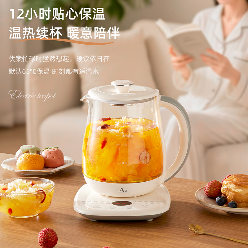 小熊全玻璃恒温养生壶纯玻璃调奶养生烧水壶办公室煮茶壶电热水壶