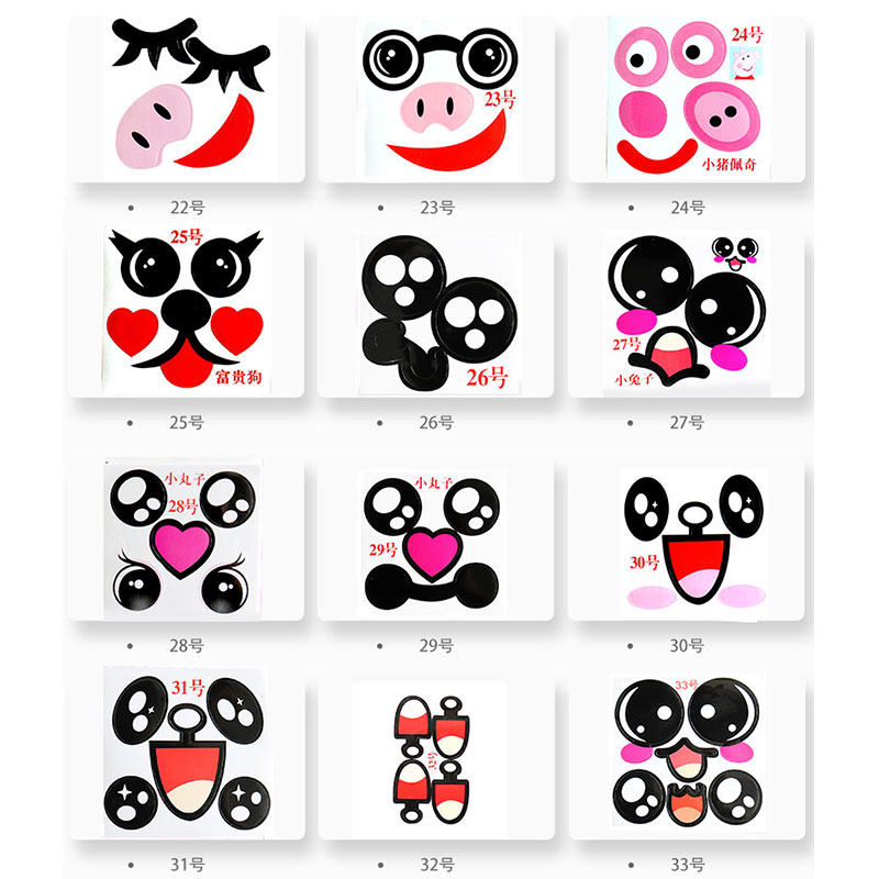6.9元100张花式棉花糖贴纸卡通小兔小黄鸭小猪眼睛嘴巴贴纸非食用