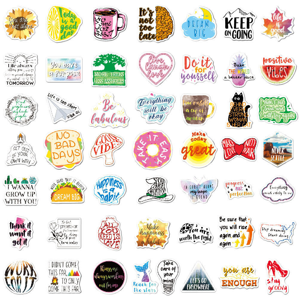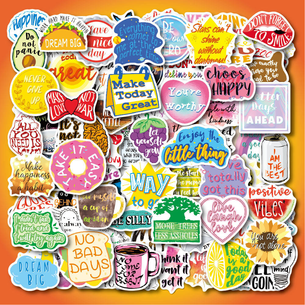 100张新款英文励志短句箴言贴纸短语涂鸦可移笔记本电脑主机箱吉他水杯行李箱电动车滑板车头盔装饰贴画防水