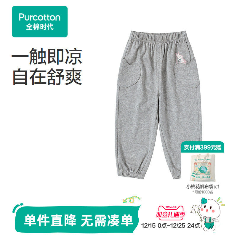全棉时代女童裤子女童运动裤2025夏季新品儿童宝宝凉感休闲裤外出