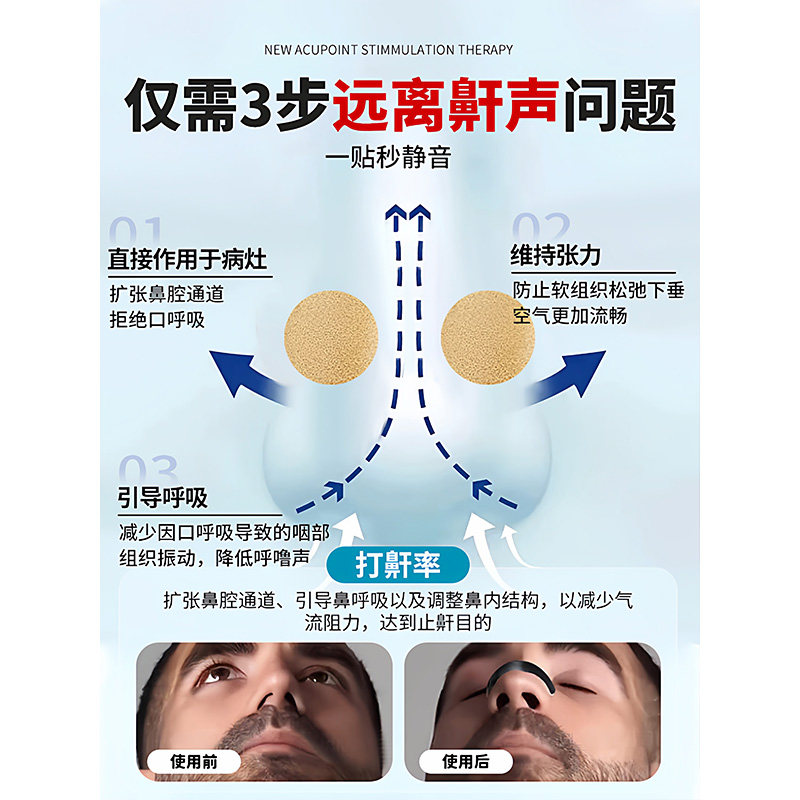 防止打呼噜止鼾鼻夹鼻孔扩张器磁吸鼻贴男士神器女通气专用贴打鼾