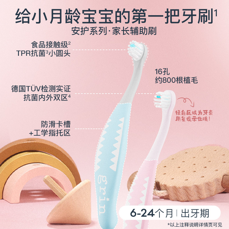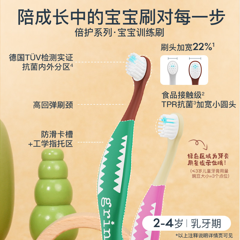 grin儿童分龄抗菌牙刷软毛0到3岁3到6岁1一2婴儿岁宝宝幼儿小专用