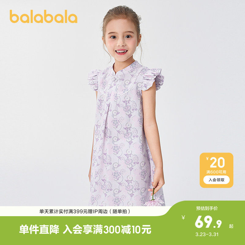 【商场同款】巴拉巴拉女童裙子儿童连衣裙夏装国风旗袍裙休闲洋气