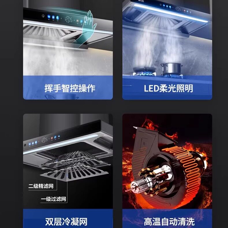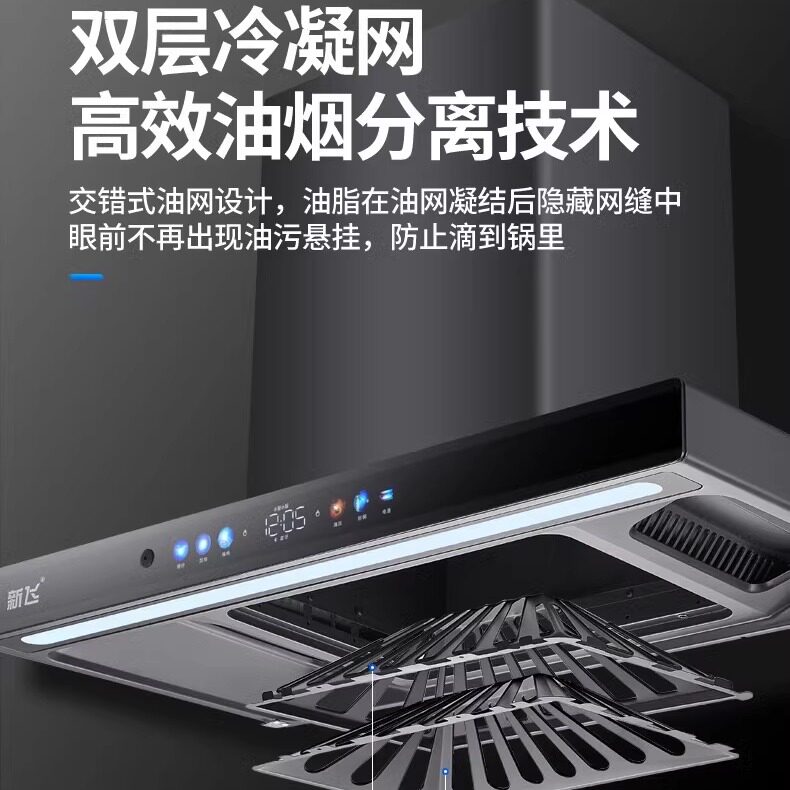 新飞变频抽油烟机三腔大吸力顶吸式新款语音自动清洗壁挂式油烟机