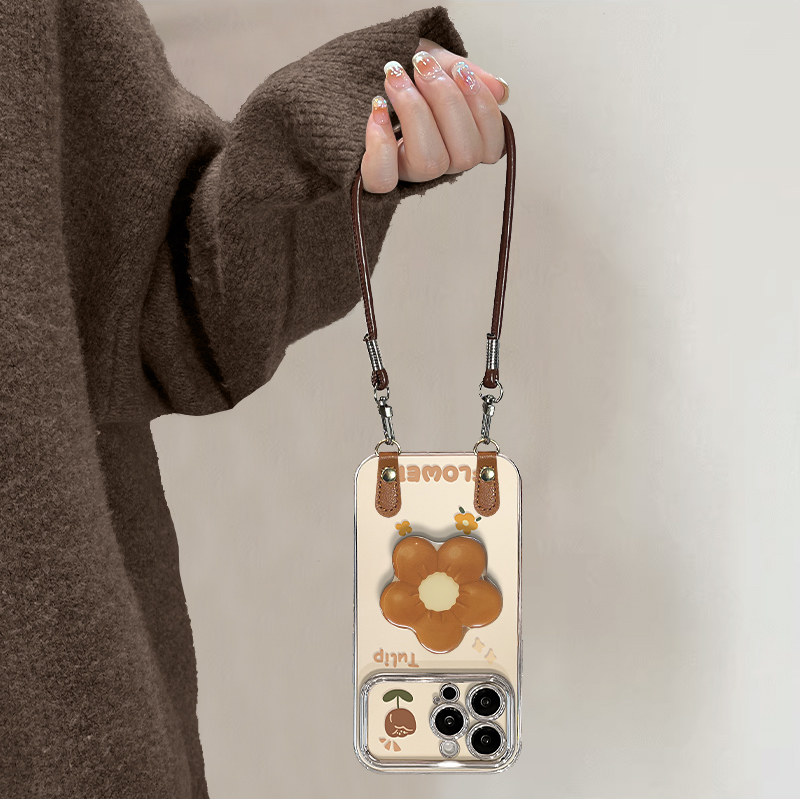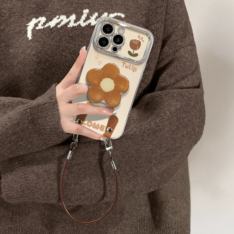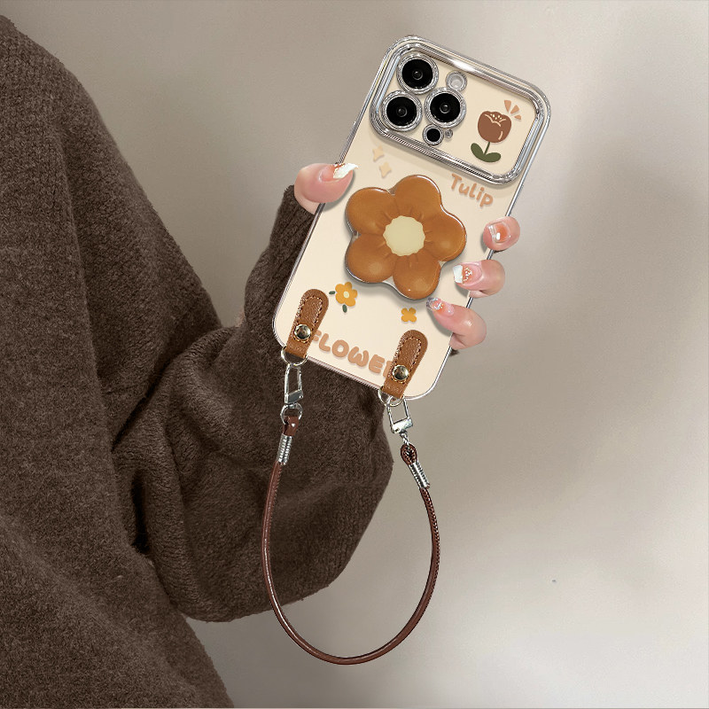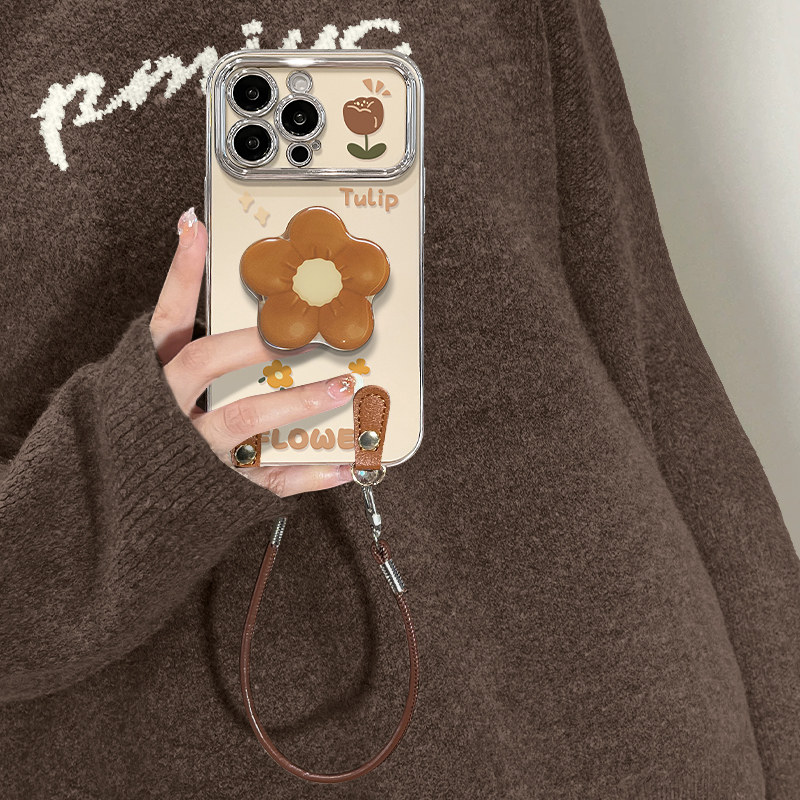 适用苹果17promax手机壳iPhone16/15plus新女款带挂绳14复古花支架13/12全包防摔xsmax电镀视窗11小众不撞款