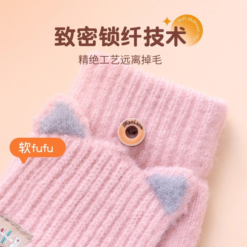 儿童手套男童秋冬季保暖写字翻盖小男孩小学生半指写作业大童冬天