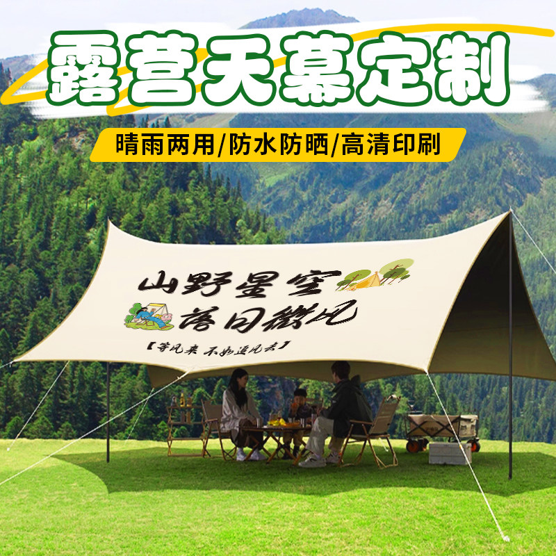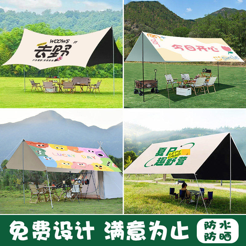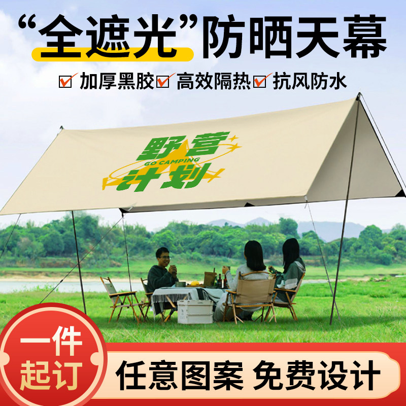 户外黑胶露营天幕挂布定制公司团建防晒logo拉条庭院车顶遮阳八角蝶形研学广告牛津布野营地烧烤防雨帐篷条幅
