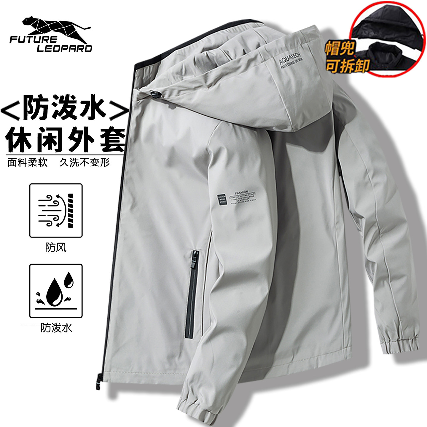 未来豹2025春秋季夹克男宽松休闲连帽百搭舒适男士户外运动外套男